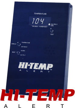 Hi-Temp Alert is a high temperature alarm with internal and remote signaling capabilities. It is used in conjunction with saunas, steam rooms, spas and hot tubs. The alarm is a set at a desired temperature. If the temperature rises above the set point, the alarm sounds and interrupts the power to the heating source. The heating source can only be reset by an attendant after the system has cooled to a point below the alarm set point.
